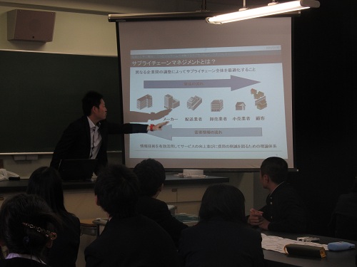 最後に、ゲーム中に発生した問題について解説を行いました。今回の授業を通し、サプライチェーンの全体を最適化するには、全体のモノの流れだけではなく情報の流れも管理しなければいけないことを体感していただけたと思います。