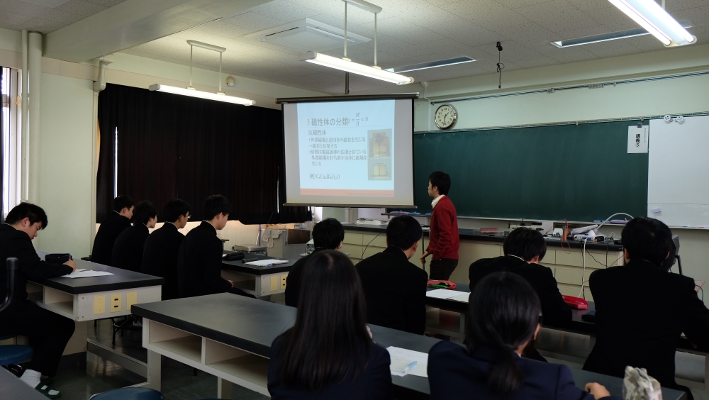 島根県立松江北高校で普通科理系と理数科の2年生を対象に出前授業を行いました。生徒たちは